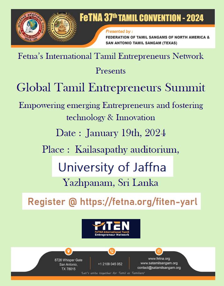 North American Tamil Association Council will hold its third #FiTEN conference with World Tamils on 2055 Thiruvalluvar year, Thai 5th (January 19, 2024) at Jaffna University.