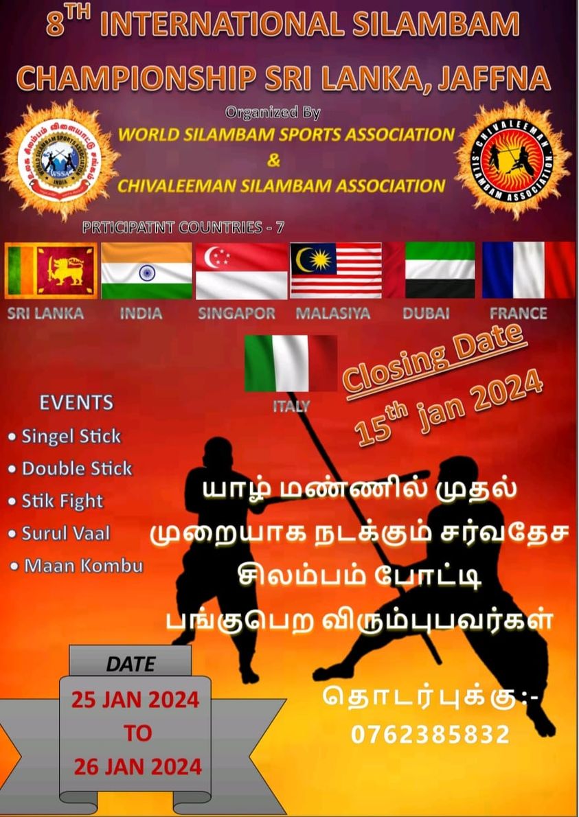 For the first time the International Silambam competition is to be held in Jaffna on 25 & 26 January 2024