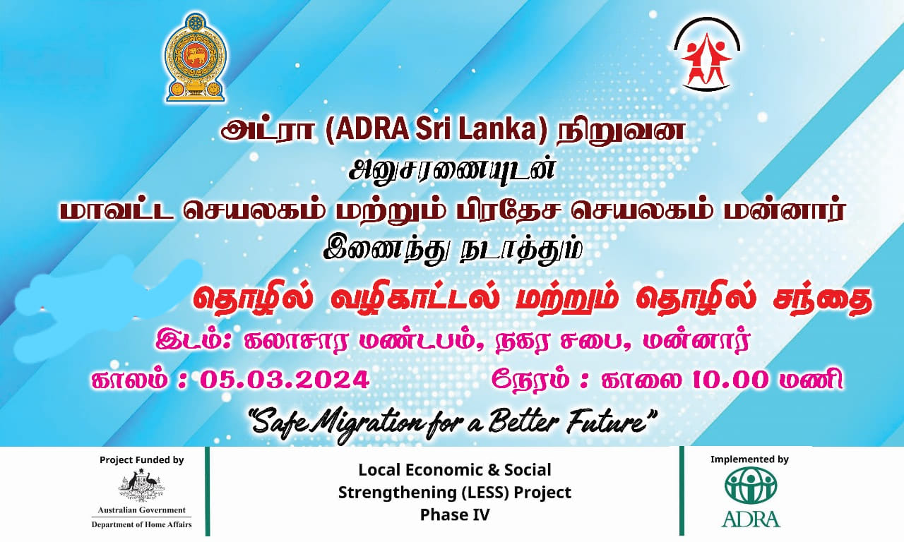 Conducted by District Secretariat and Mannar City Regional Secretariat. Funded by Australian Government, implemented by ADRA Sri Lanka